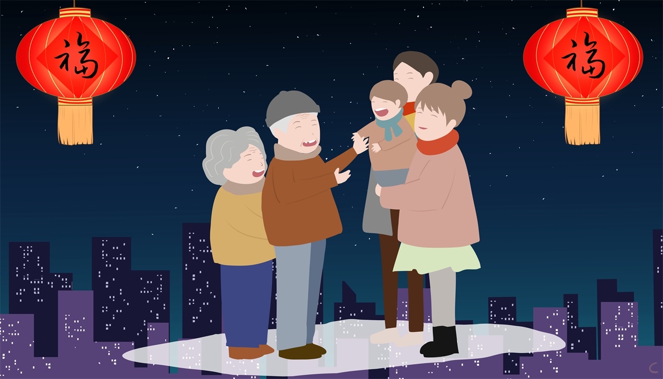 欢声笑语贺新春 欢聚一堂迎新年 横批:合家欢乐